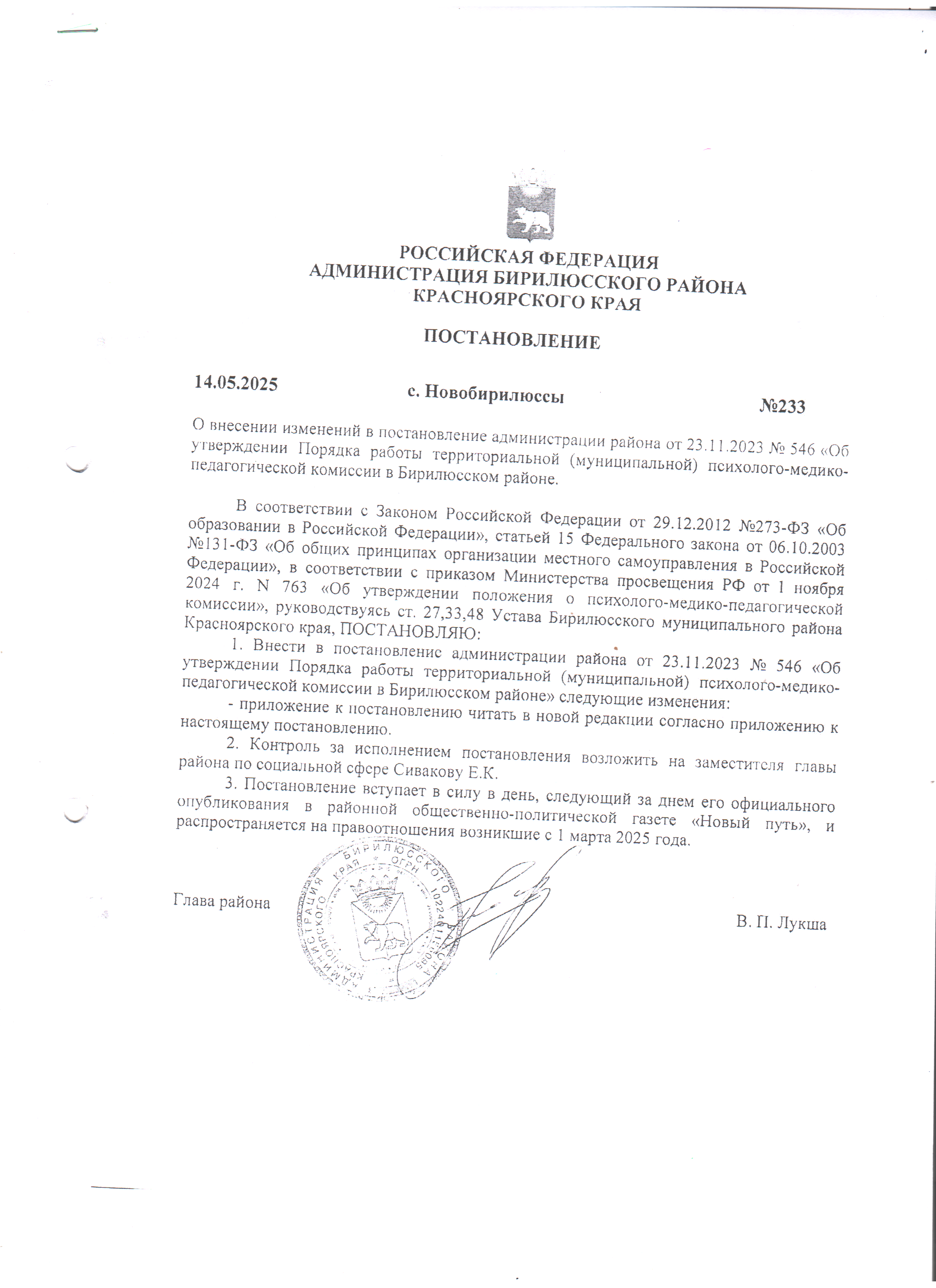 Постановление №430 от 05.10.2017г "Об утверждении порядка работы ТПМПК Бирилюсского района"